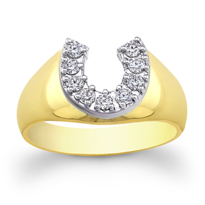 Men's Horseshoe Band with 9 Round diamonds prong-set into the ring. Two diamond weight sizes available, as well as color options.
