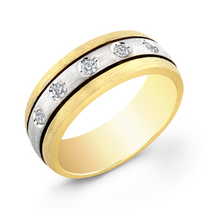 Men's three diamond band with yellow gold accent sides. Available in many two-tone color options, or even a single color design.