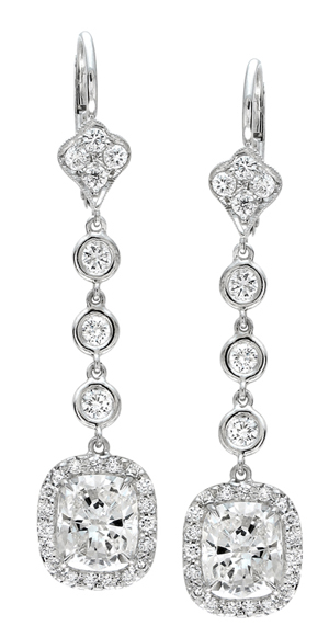 Pave diamond dangle earrings. Diamond weight besides center diamonds are 0.70 ctw