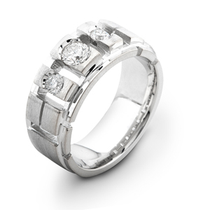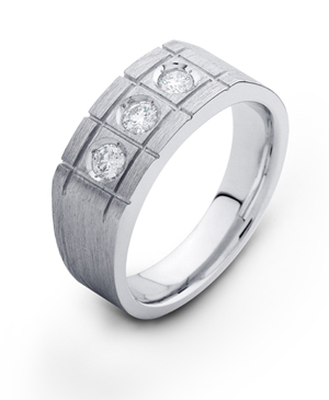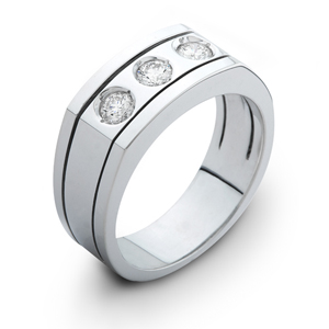 Men's 3-diamond wedding band. Available in many different carat weights and colors