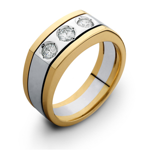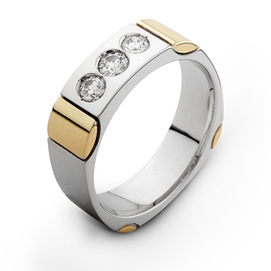 Men's three diamond band with yellow gold accent sides. Available in many two-tone color options, or even a single color design.