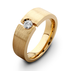 The working man's band! Looks like a lug nut, but this design is high fashion and quite unique. Single round diamond burnished into the band.